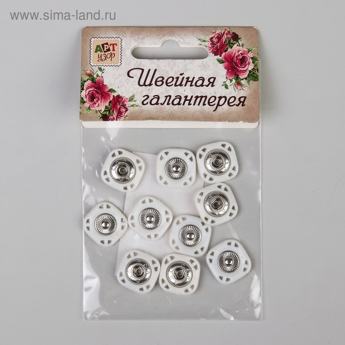 Кнопки пришивные, декоративные, 15 × 15 мм, 5 шт, цвет белый