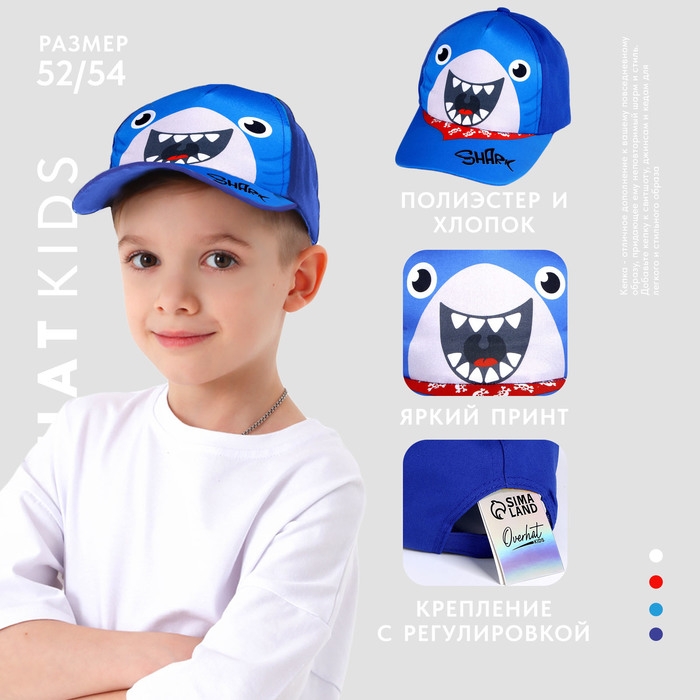 Кепка детская для мальчика «Акула», цвет синий, р-р. 52-54, 5-7 лет
