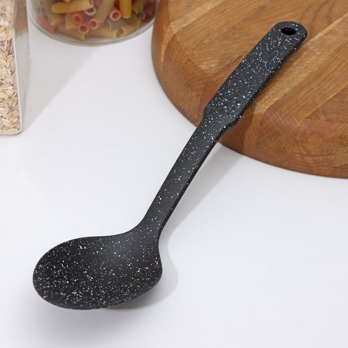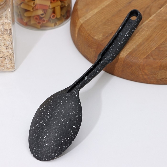 Ложка гарнирная Доляна «Мрамор», 30,5 см, цвет чёрный