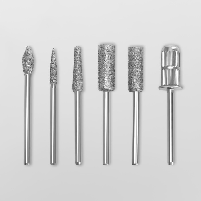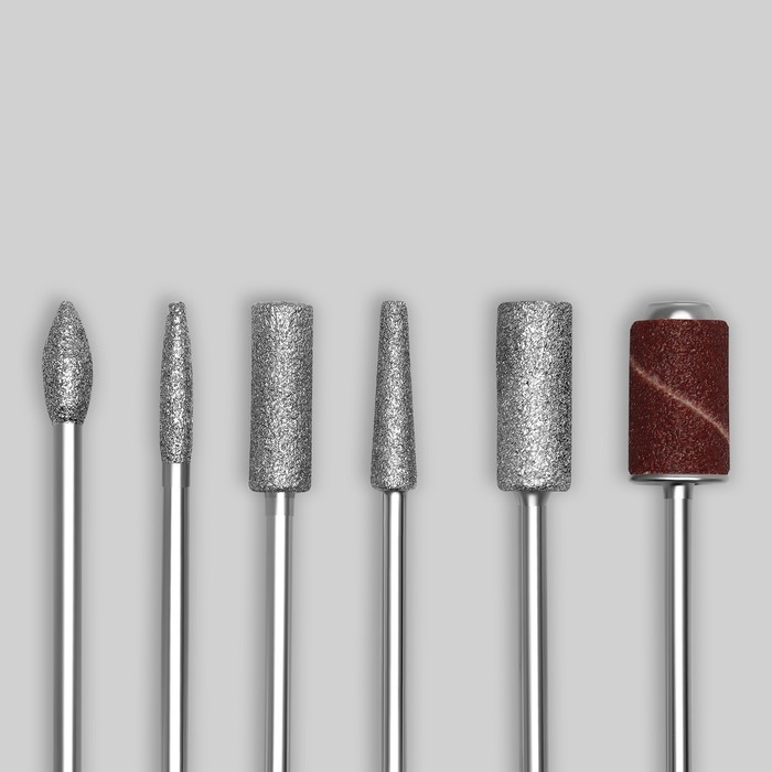 Универсальные фрезы предназначены для аппаратного маникюра и педикюра. Набор состоит из 6 алмазных фрез разной формы и диаметра и 6 колпачков разной абразивности.
