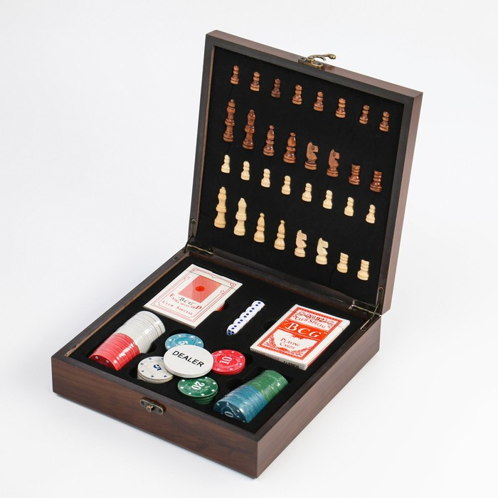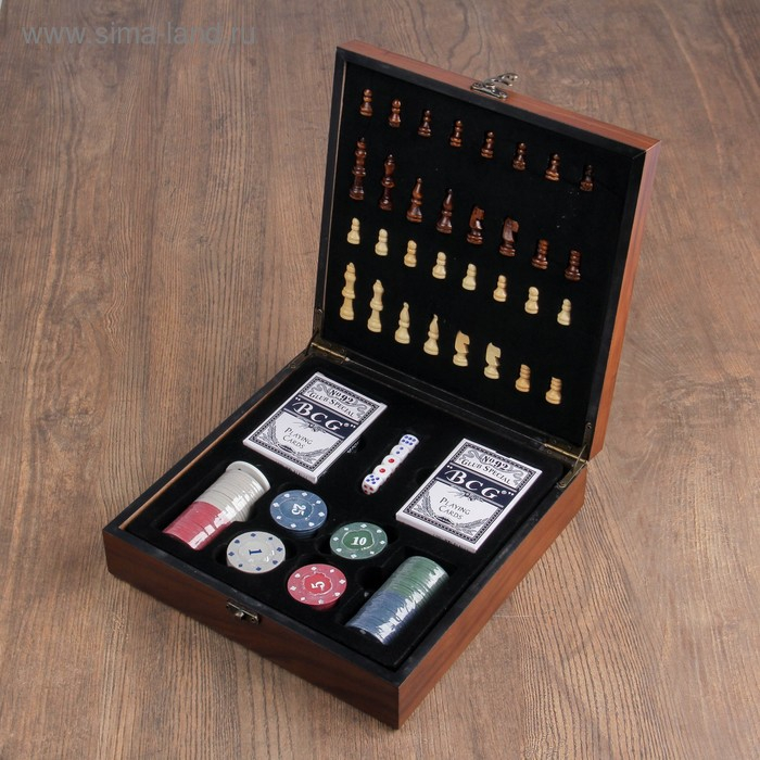 Шахматы, покер, настольные игры, подарочный набор 4 в 1, 24 х 24 см