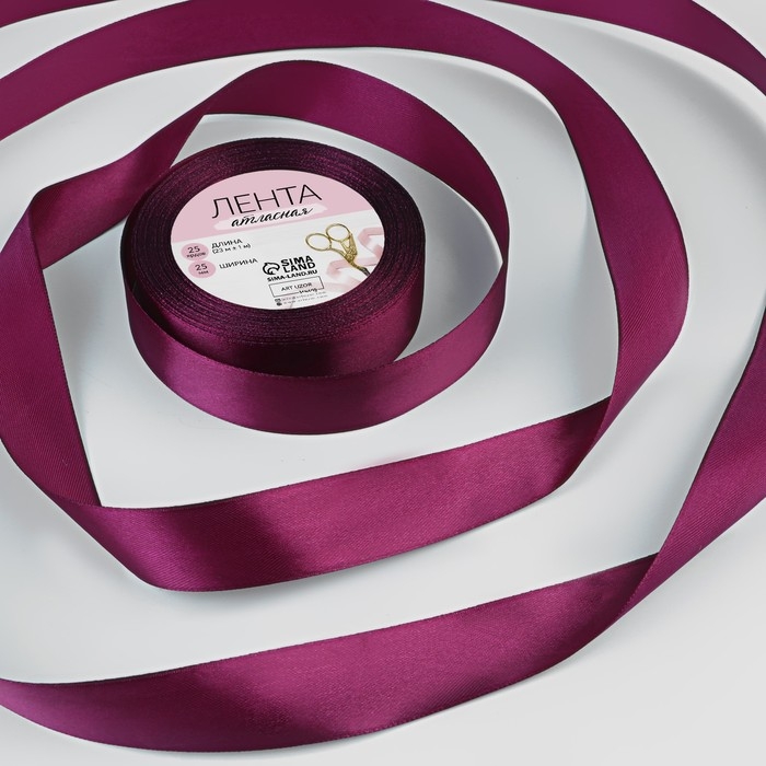 Лента атласная, 25 мм × 23 ± 1 м, цвет баклажановый №252