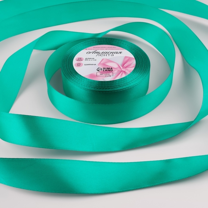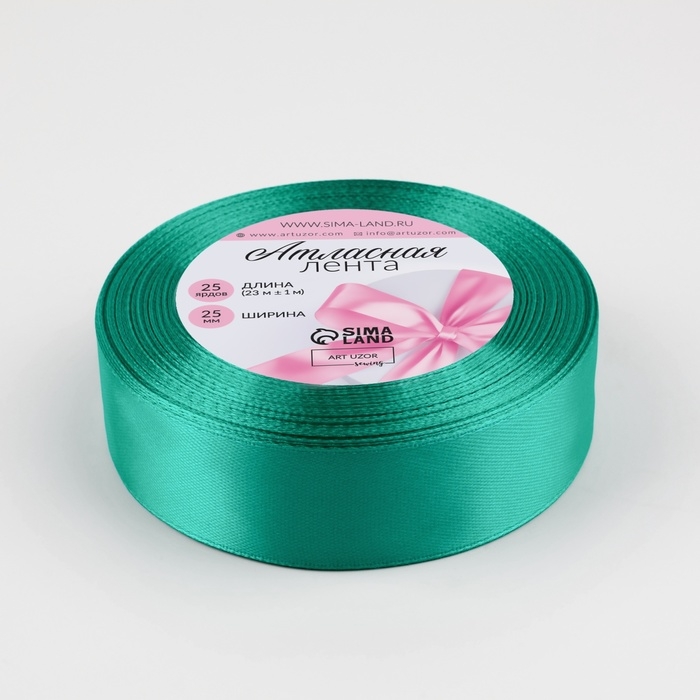Лента атласная, 25 мм × 23 ± 1 м, цвет бирюзовый №54