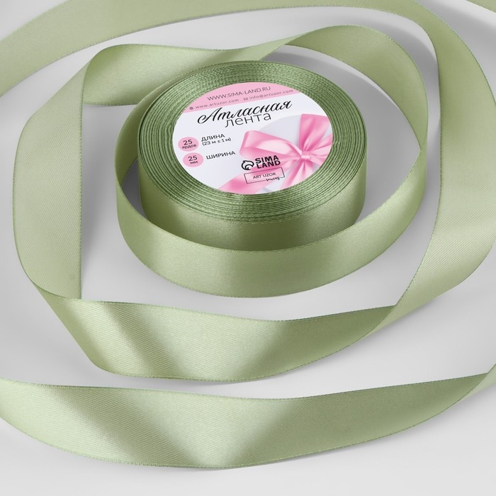 Лента атласная, 25 мм × 23 ± 1 м, цвет фисташковый №65