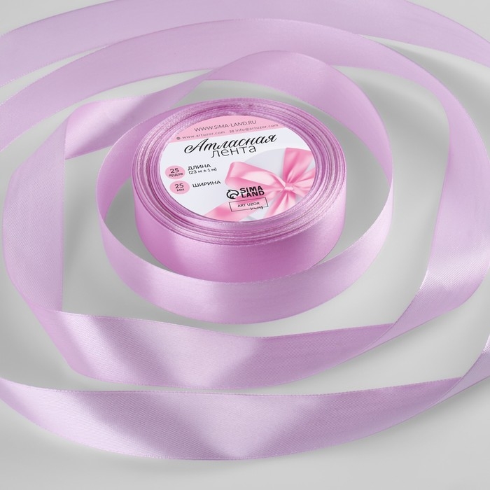 Лента атласная, 25 мм × 23 ± 1 м, цвет сиреневый №21
