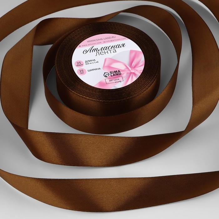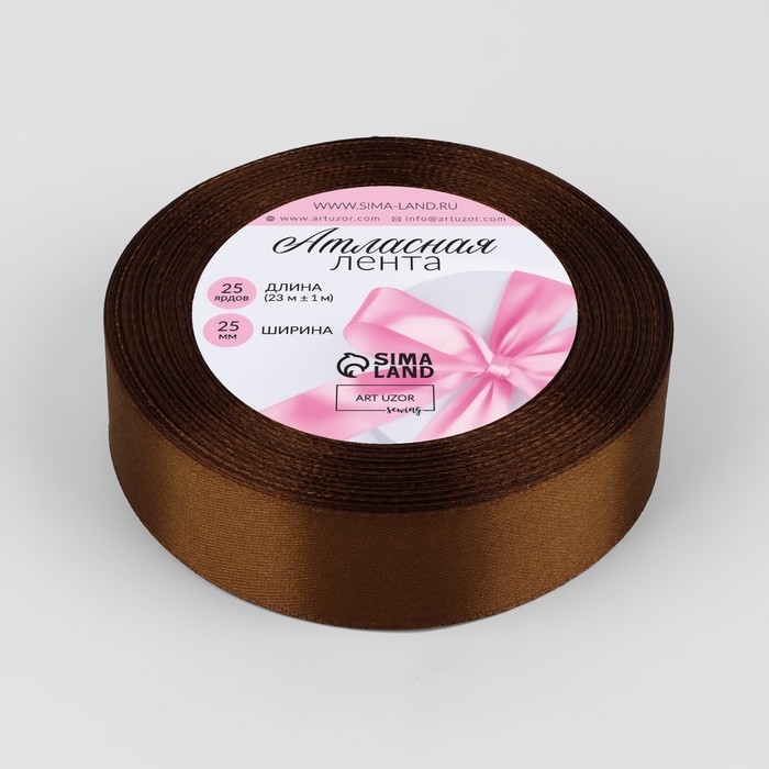 Лента атласная, 25 мм × 23 ± 1 м, цвет тёмно-коричневый №32