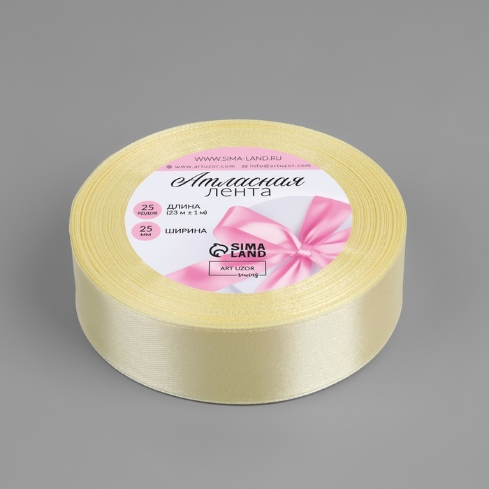 Лента атласная, 25 мм × 23 ± 1 м, цвет ванильный №09