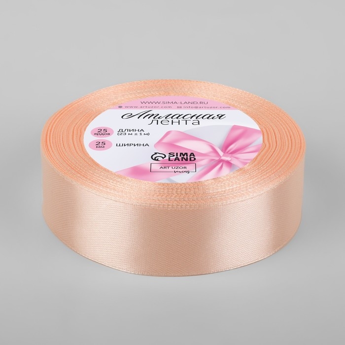 Лента атласная, 25 мм × 23 ± 1 м, цвет кремово-розовый №06