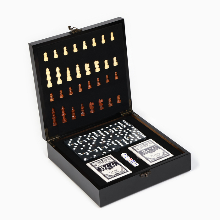 Набор 4 в 1: шахматы, домино, 2 колоды карт, 25 х 25 см