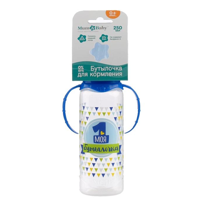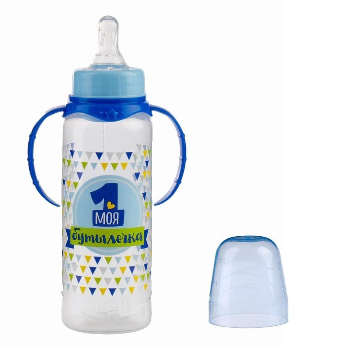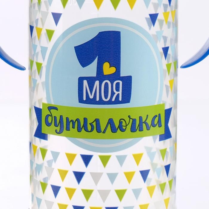 Бутылочка для кормления «Моя первая бутылочка», классическое горло, с ручками, 250 мл., от 0 мес., цвет синий