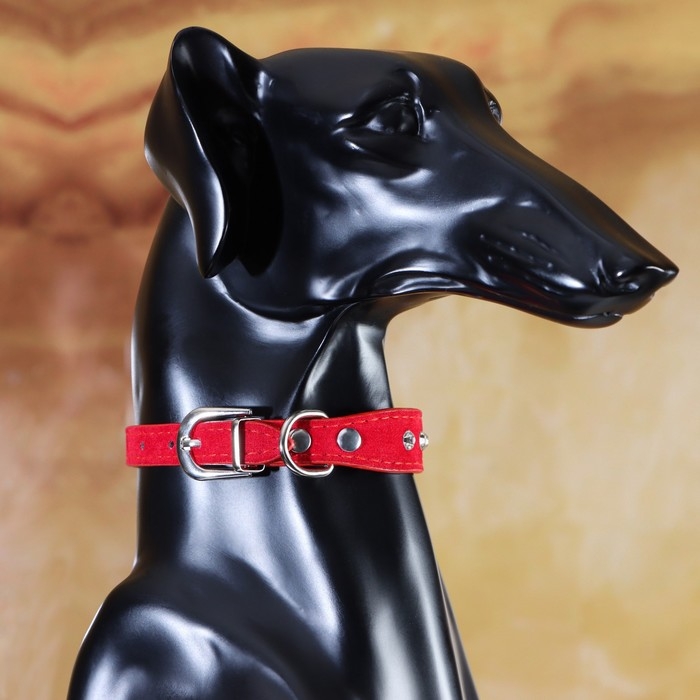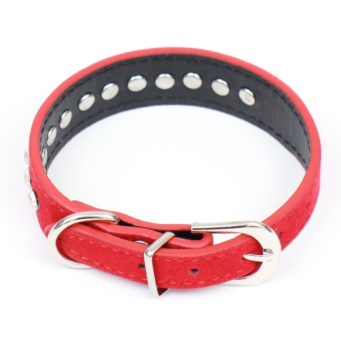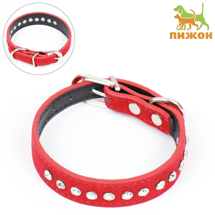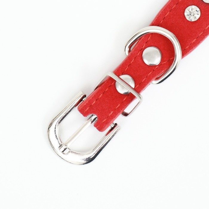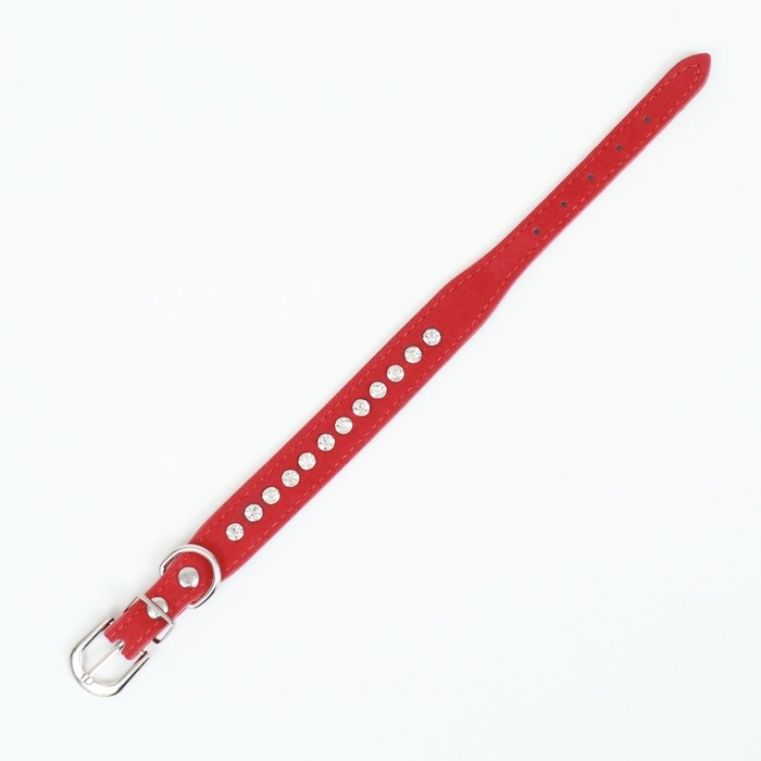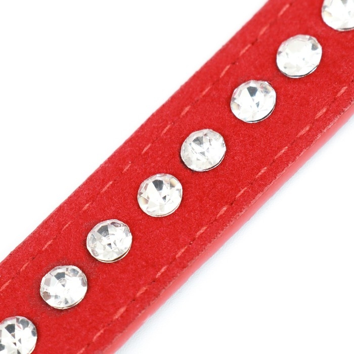 Ошейник "Бархат и стразы", 31 х 1,3/2 см, ОШ 22-28 см, красный