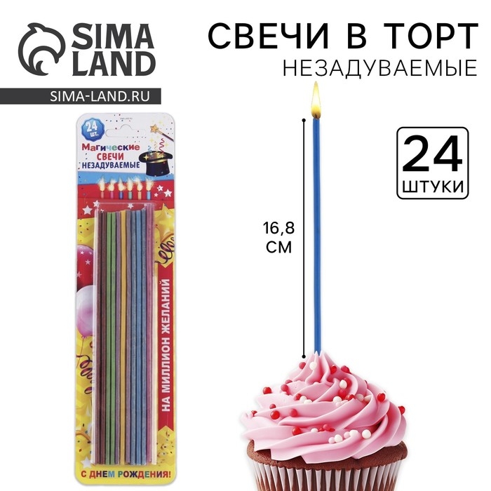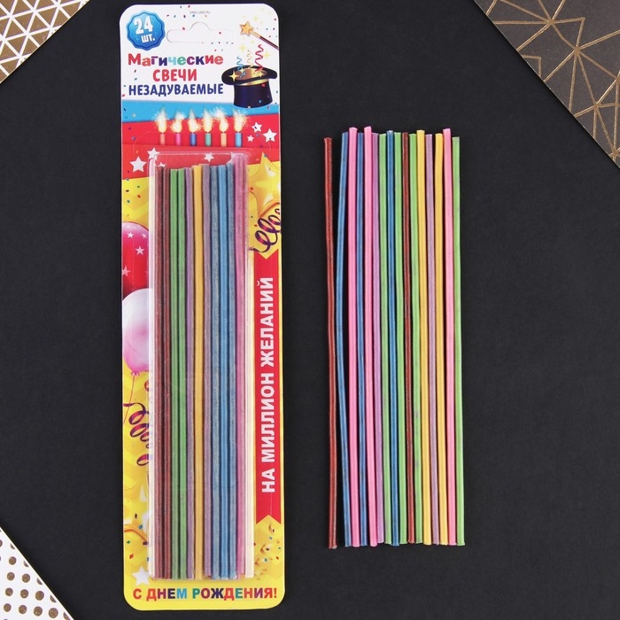 Свечи для торта незадуваемые «Разноцветные», 24 шт., 16,8 х 0,3 см