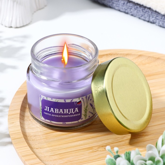 Свеча в банке ароматизированная "Лаванда" 50гр, время горения 13ч