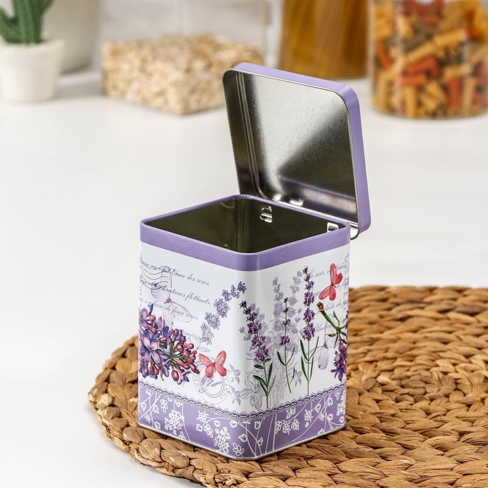 Банка для сыпучих продуктов «Лаванда», 860 мл, 8,7×11,4 см, прямоугольная