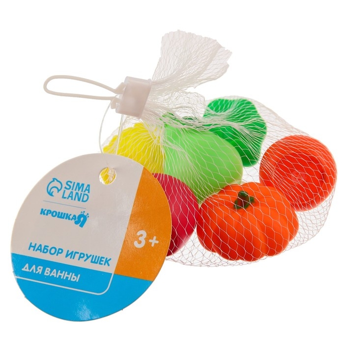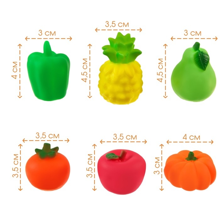 Набор резиновых игрушек для ванны «Овощи-Фрукты», с пищалкой, 6 шт, виды МИКС, Крошка Я