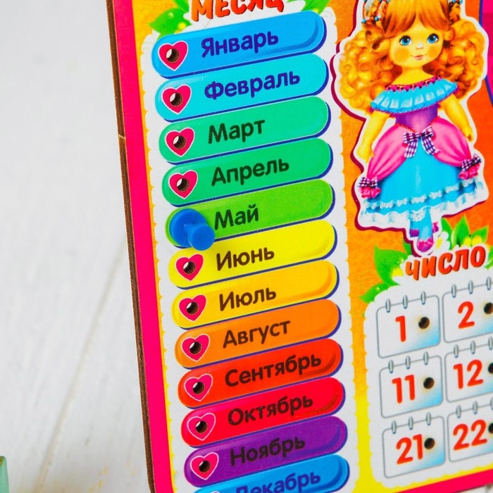 Календарь обучающий "Яркие часы", из дерева
