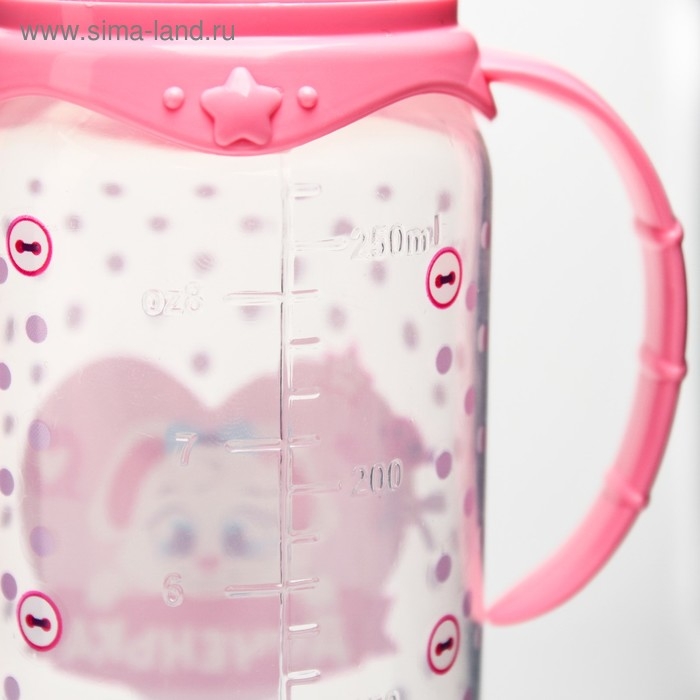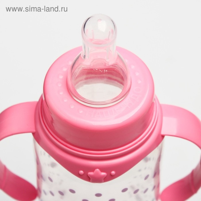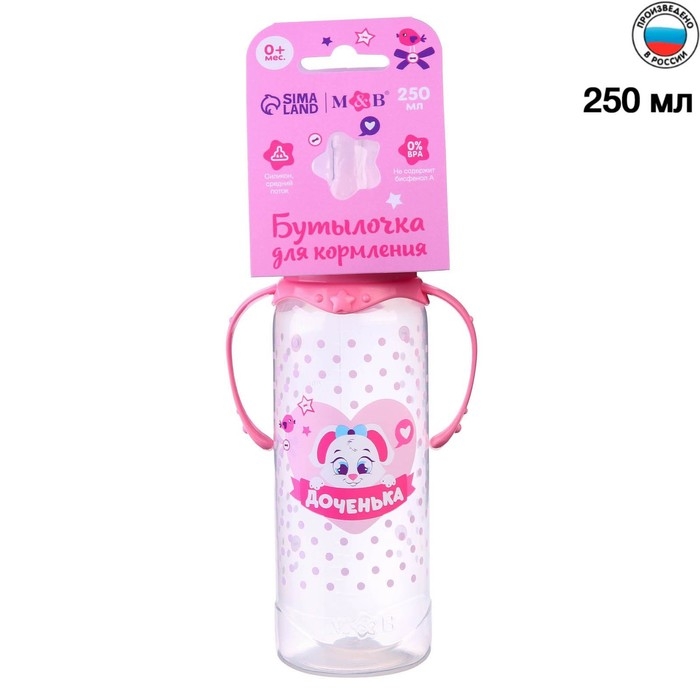 Бутылочка для кормления «Доченька», классическое горло, 250 мл., от 0 мес., с ручками, цвет розовый