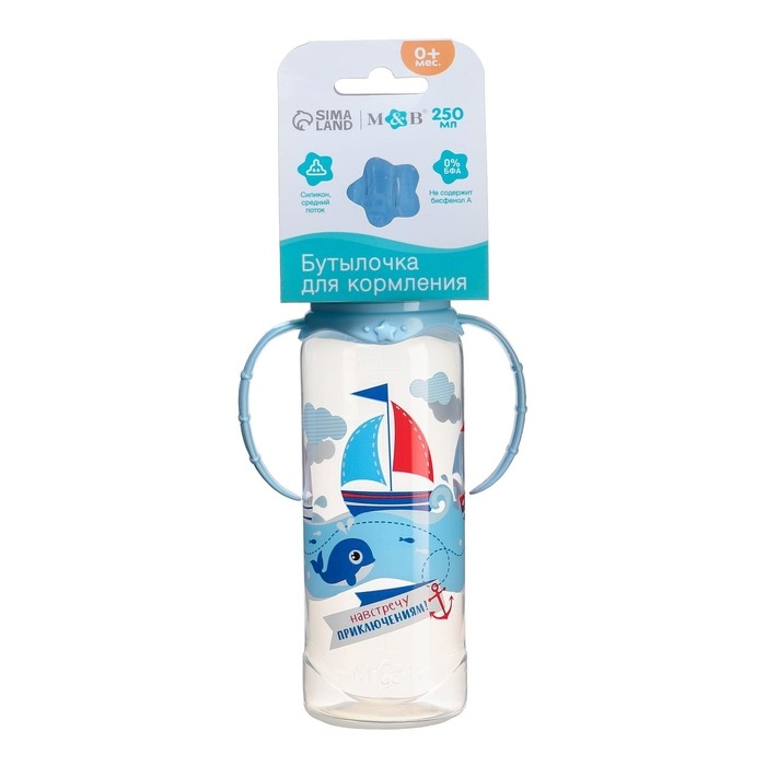 Бутылочка для кормления «Морское приключение», классическое горло, с ручками, 250 мл., от 3 мес., цвет голубой