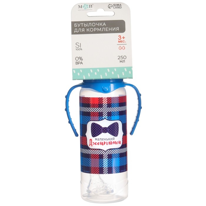 Бутылочка для кормления «Маленький джентльмен», классическое горло, с ручками, 250 мл., от 0 мес., цвет синий