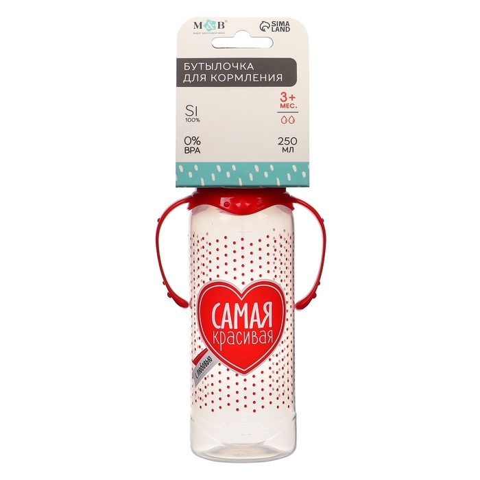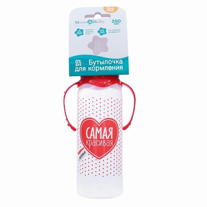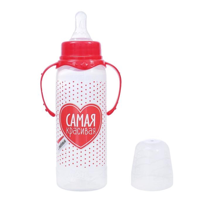 Бутылочка для кормления «Самая красивая», классическое горло, с ручками, 250 мл., от 3 мес., цвет красный