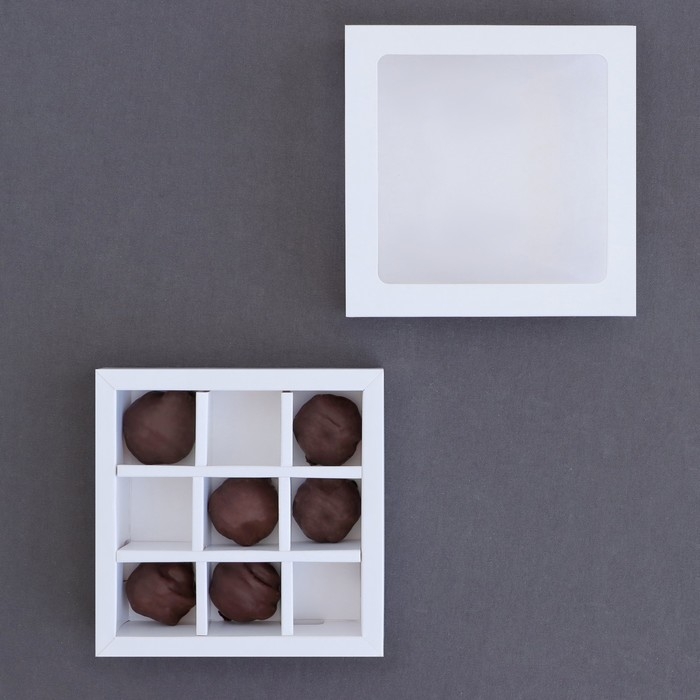 Упаковка для конфет 9 шт, 13,5 х 13,5 х 4 см, белый