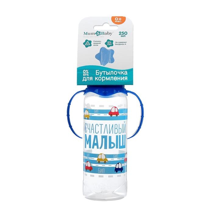 Бутылочка для кормления «Малыш», классическое горло, с ручками, 250 мл, от 0 мес., цвет синий