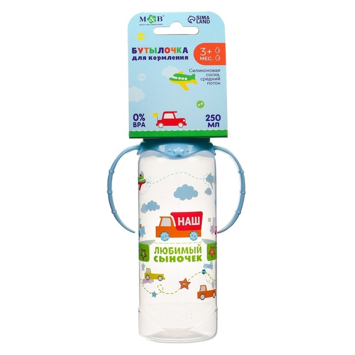 Бутылочка для кормления «Сыночек», классическое горло, с ручками, 250 мл., от 0 мес., цвет голубой