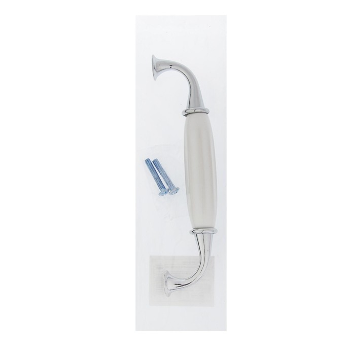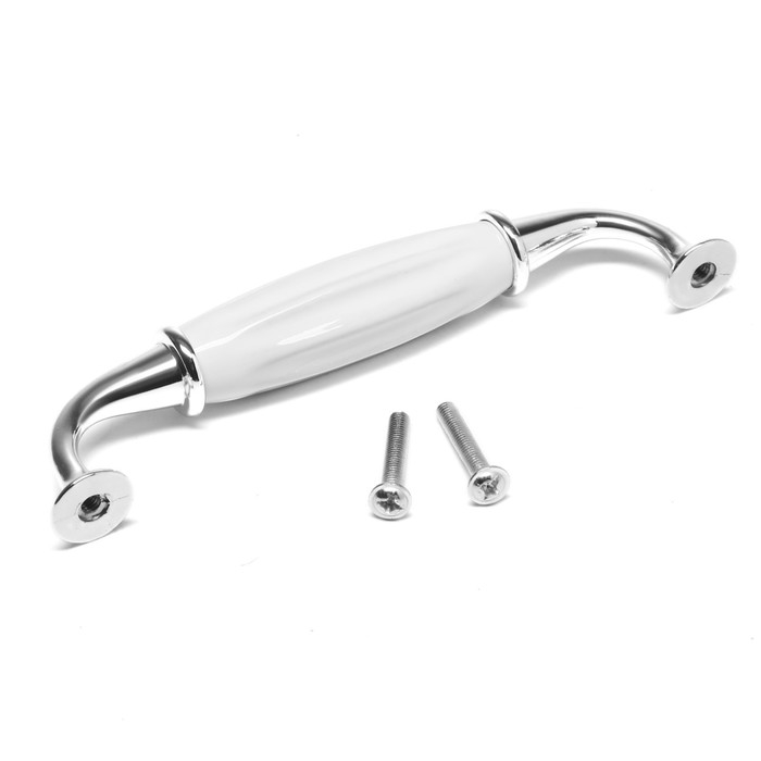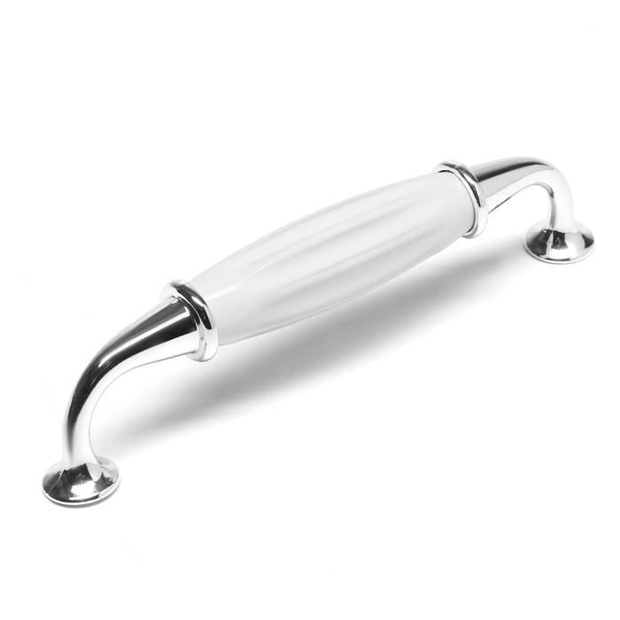Интересный дизайн ручки сочетается с различными типами мебельного гарнитура. Фурнитура имеет привлекательный внешний вид и компактный размер. Хромированный оттенок металла в сочетании с белоснежной керамикой идеально подходит к мебельным фасадам в различной цветовой гамме.