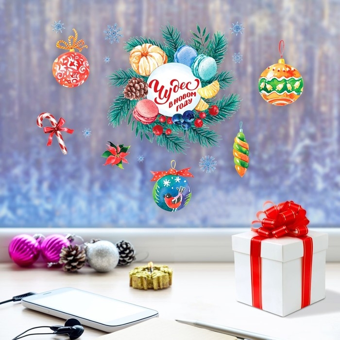 Наклейки на окна новогодние