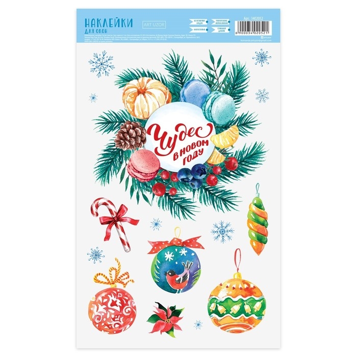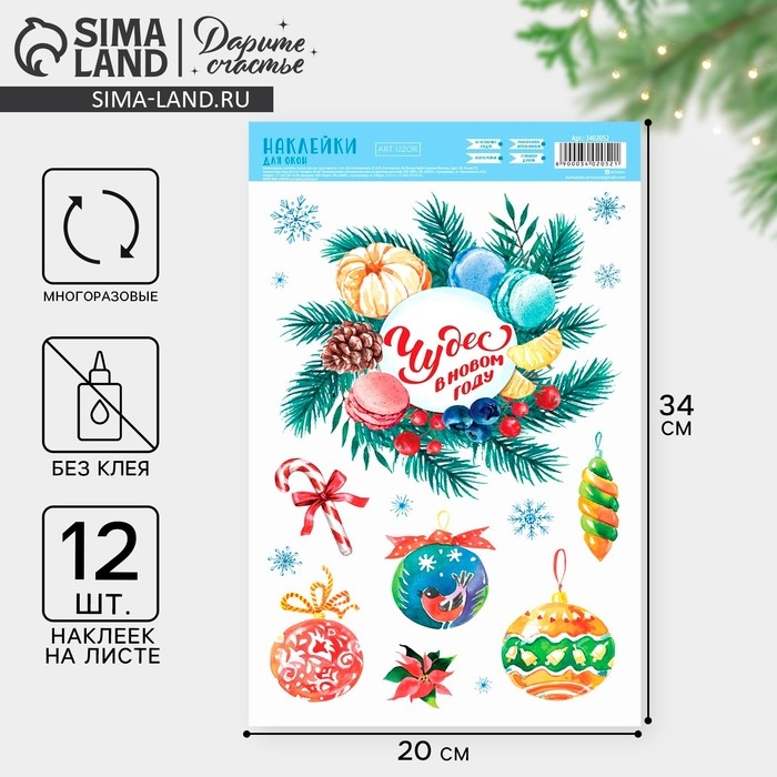 Наклейки новогодние на окна «Чудес в Новом году», многоразовые, 20 х 34 см, Новый год