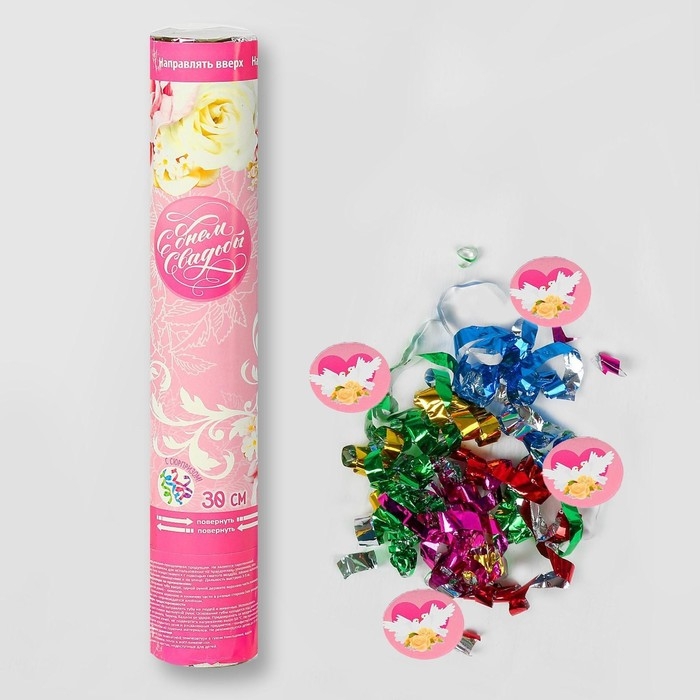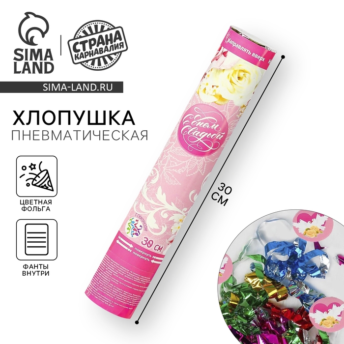Хлопушка пневматическая «Свадьба», фанты, серпантин, фольга, 30 см