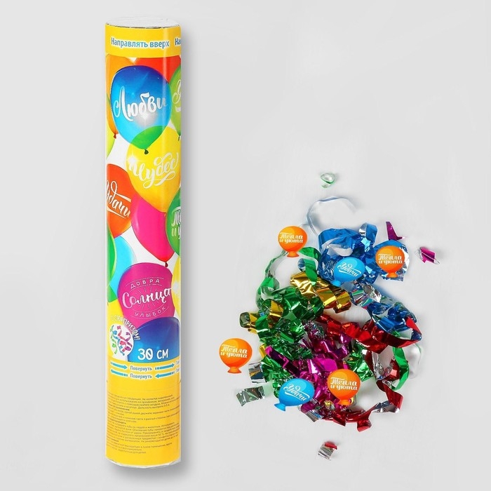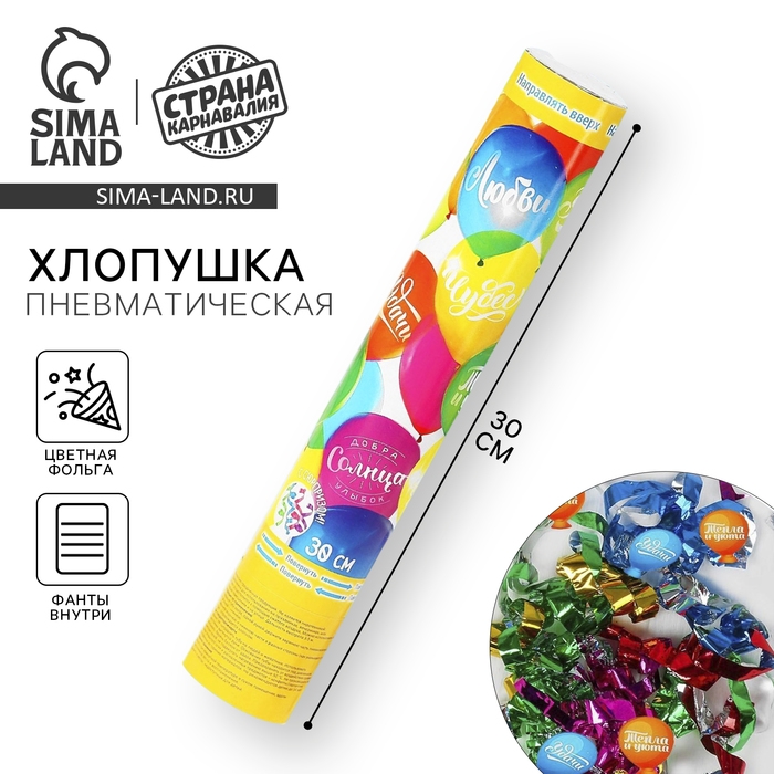Хлопушка пневматическая «Шарики», фанты, серпантин, фольга, 30 см