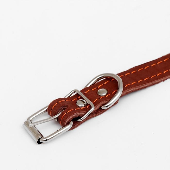 Ошейник кожаный двухслойный, 46 х 2 см, ОШ 25-35 см, коричневый