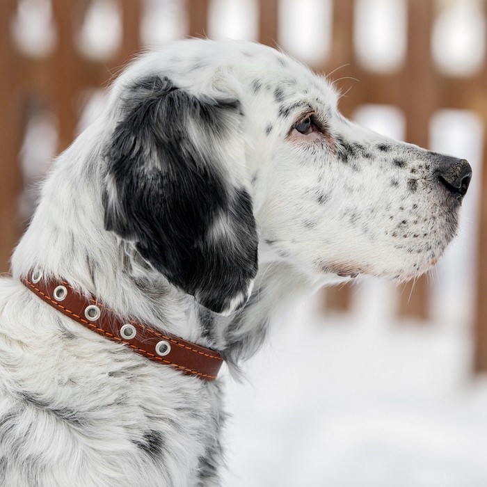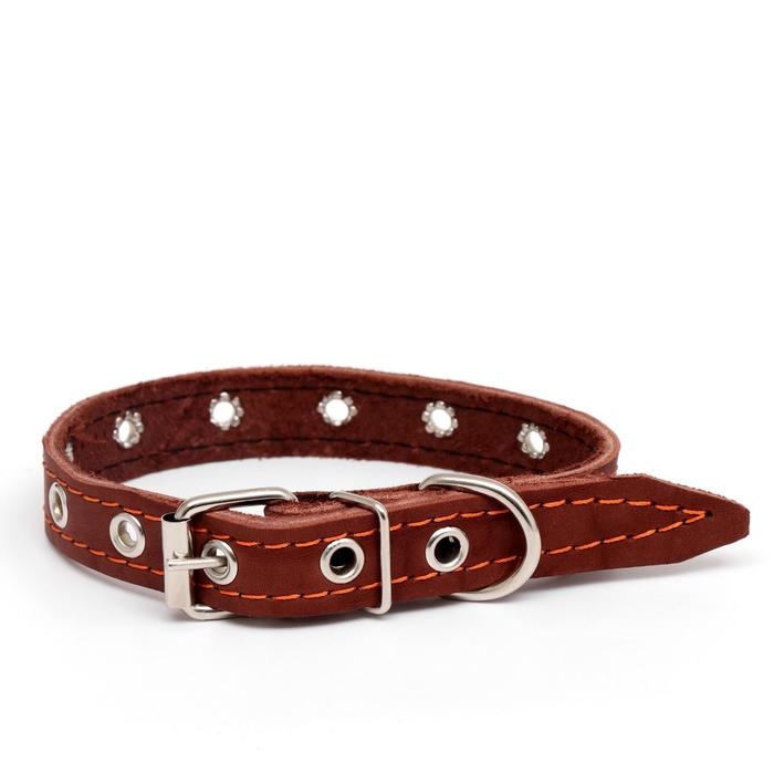 Ошейник кожаный на синтепоне украшенный, 45 х 2 см, ОШ 25-35 см, коричневый