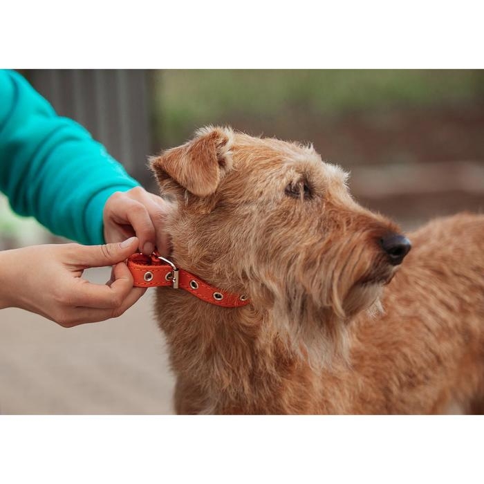 Ошейник кожаный однослойный безразмерный, 45 х 2 см, ОШ 18-39 см, коричневый