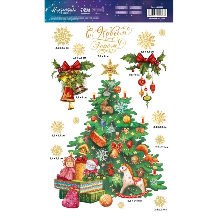 Наклейки новогодние на окна «Новогодняя ёлочка», многоразовые, 20 х 34 см, Новый год