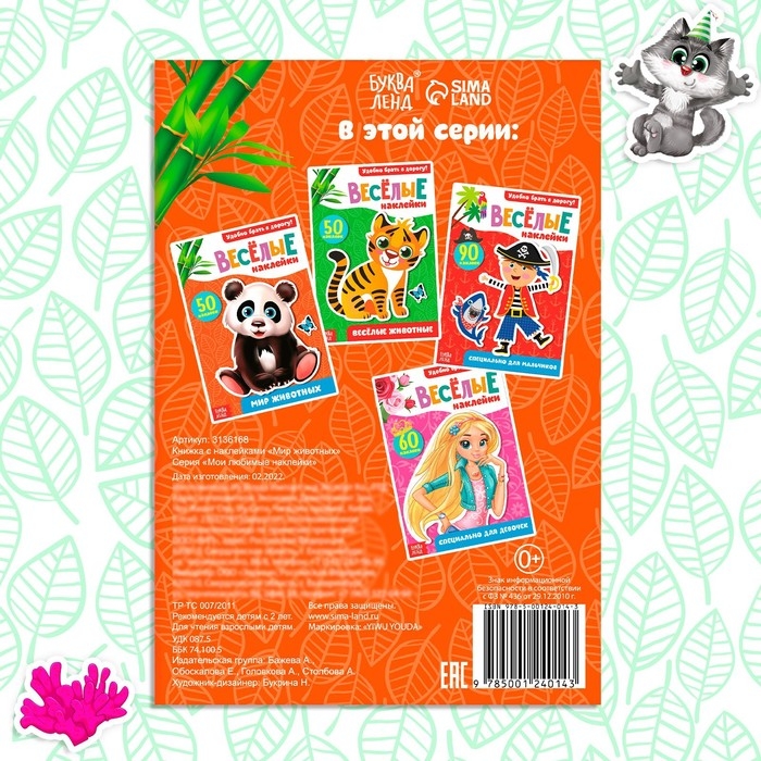 Наклейки «Мир животных», 50 наклеек, 12 стр.