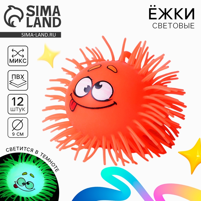 Мяч детский резиновый ёжка «Филя», резиновый, световой, цвета МИКС