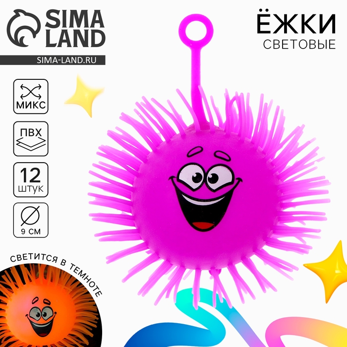Мяч детский резиновый ёжка «Гарри», резиновый, световой, цвета МИКС