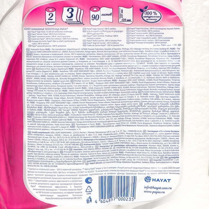 Полотенца бумажные Papia, 3 слоя, 2 рулона