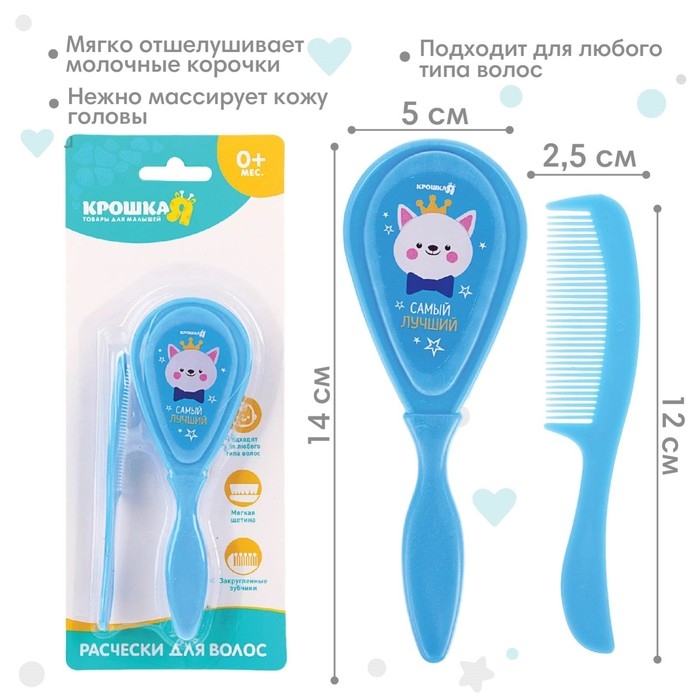 Расчёска детская + массажная щётка для волос «Самый лучший», от 0 мес., цвет голубой
