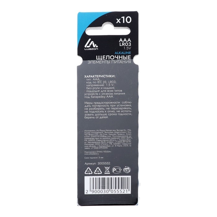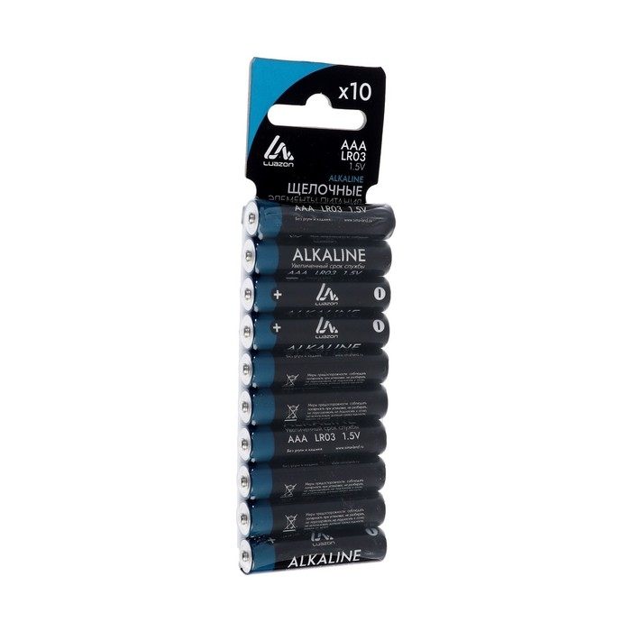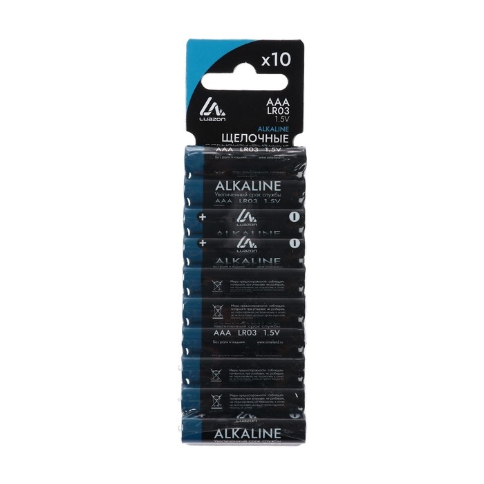 Батарейка алкалиновая (щелочная) Luazon, AAA, LR03, блистер, 10 шт