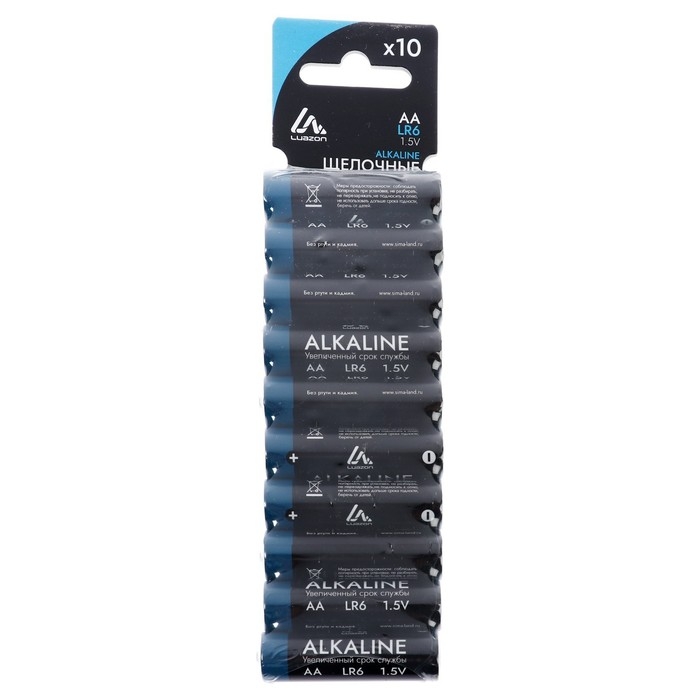 Батарейка алкалиновая (щелочная) Luazon, AA, LR6, блистер, 10 шт