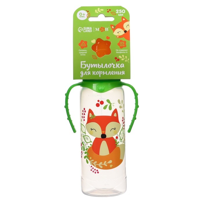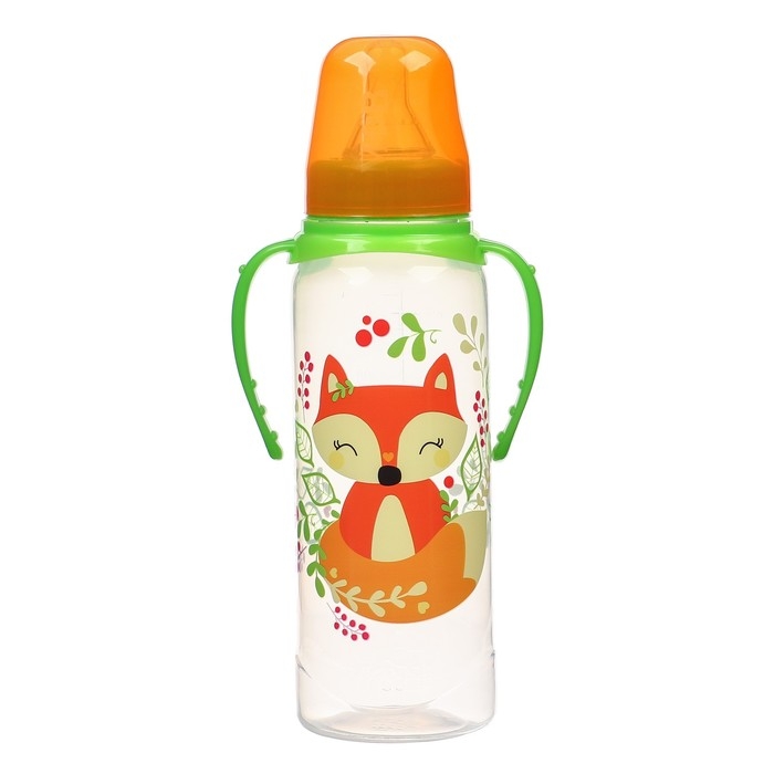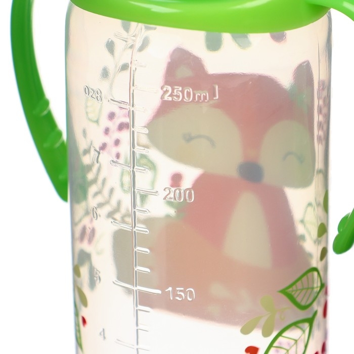 Бутылочка для кормления «Лисичка Соня», классическое горло, с ручками, 250 мл., от 0 мес., цвет зелёный