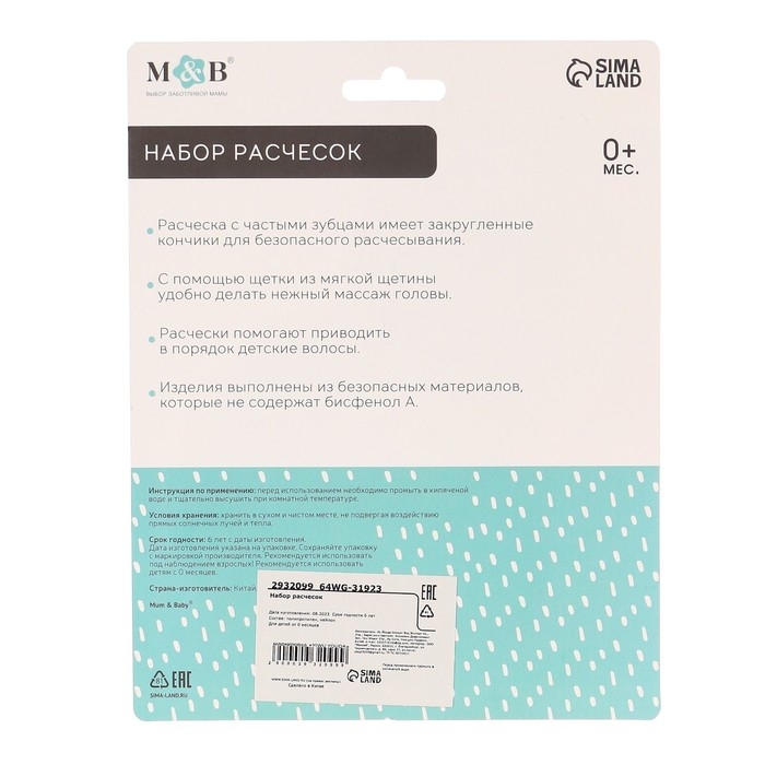 Расческа-щетка с мягкой щетиной и удобная расческа с закругленными зубчиками предназначены для малышей с первых дней жизни.