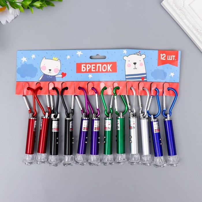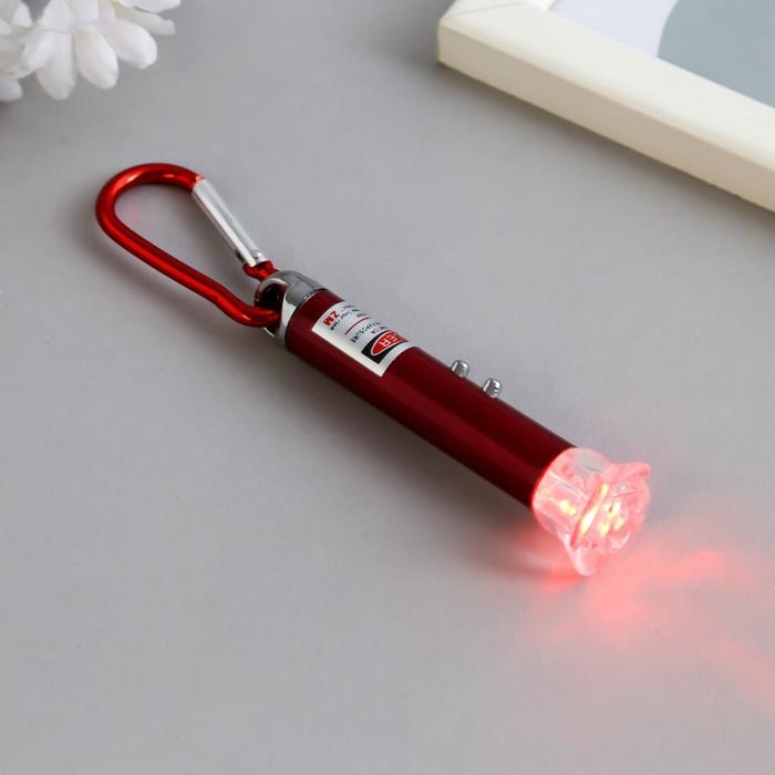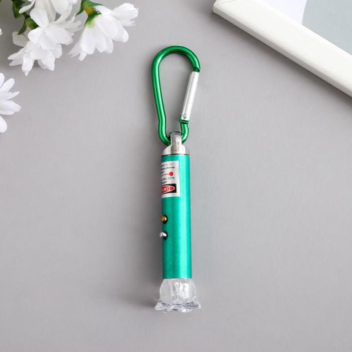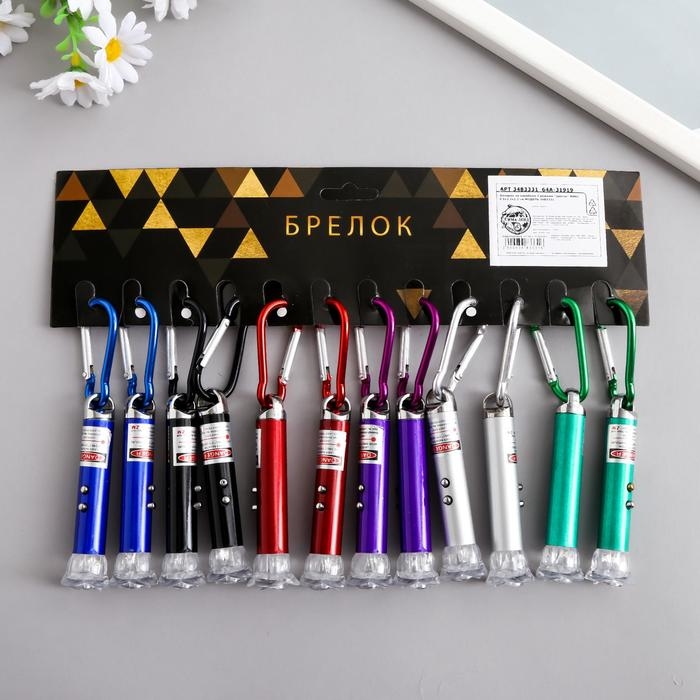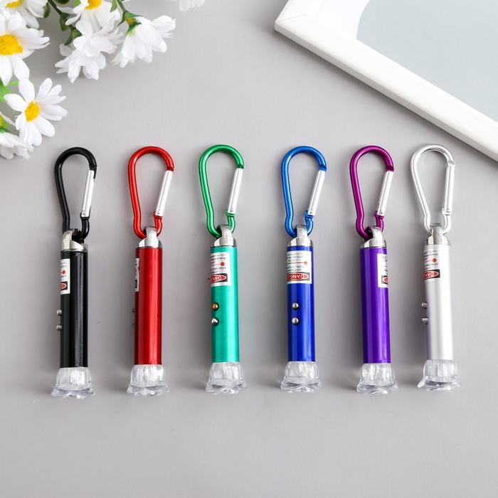Фонарик+лазер на карабине 3 режима "Цветок" МИКС 8,5х2,2х2,2 см