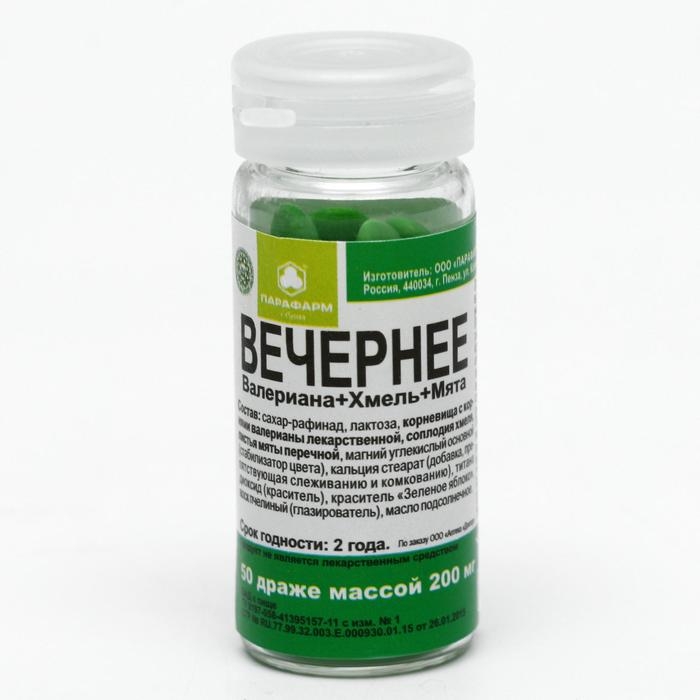 Драже Вечернее Парафарм, валериана + хмель + мята, 50 шт. по 200 мг