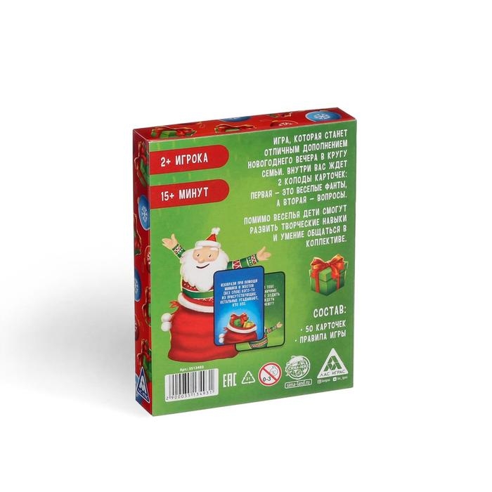 Эта игра украсит новогодний вечер в кругу родных. Она содержит 2 колоды карточек: первая — это веселые фанты, а вторая — вопросы. Дети смогут развить творческие навыки и умение общаться в коллективе.