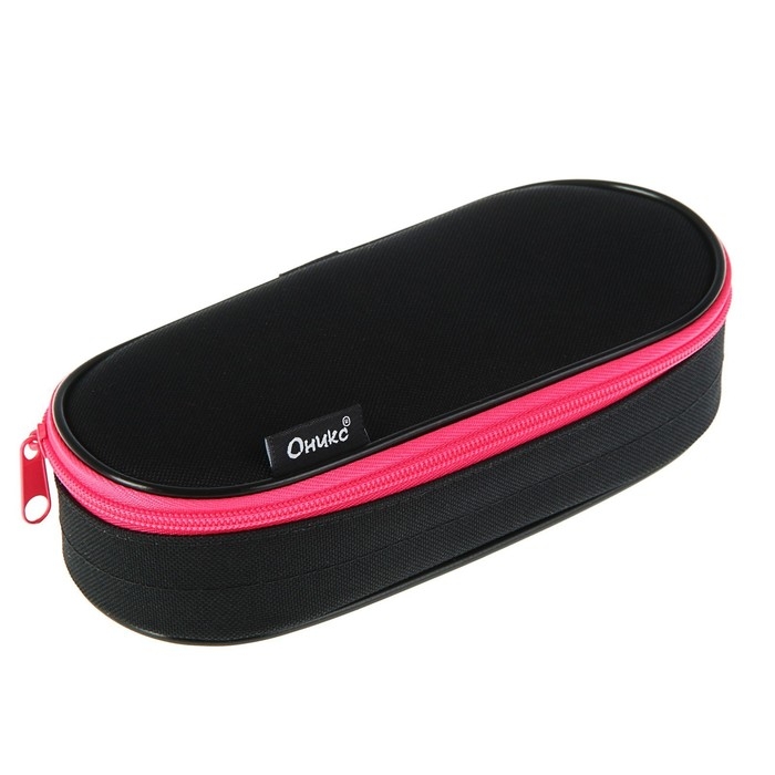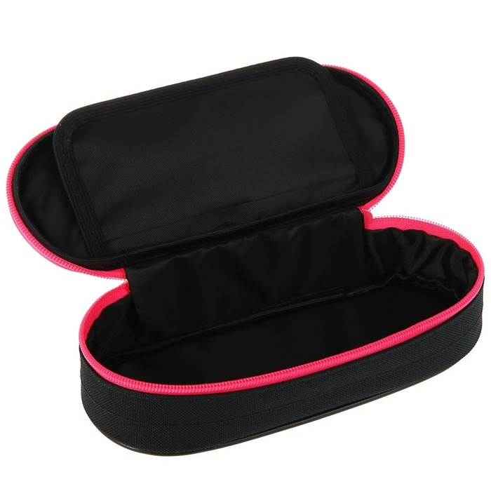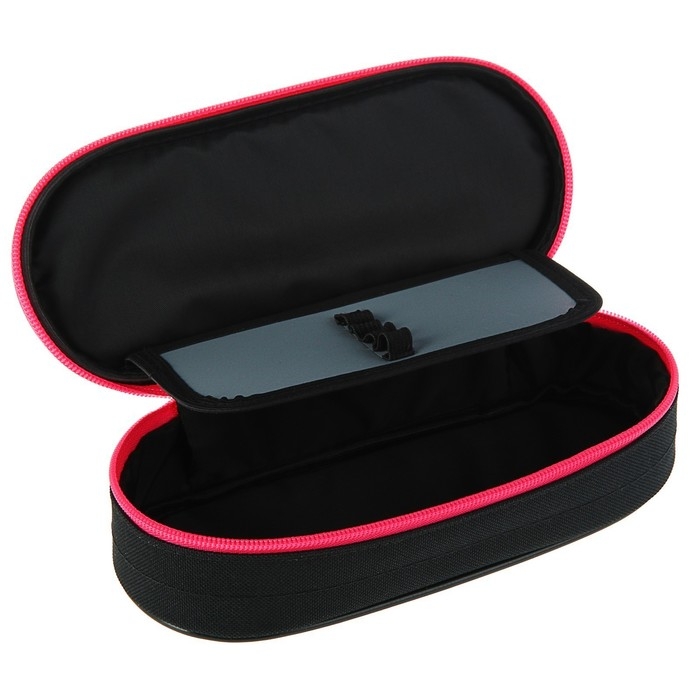 Пенал-футляр 85 х 210 х 50 мм с откидной планкой, мягкий, текстильный, Calligrata ПМК 24-42 Black, чёрный/ярко-розовый
