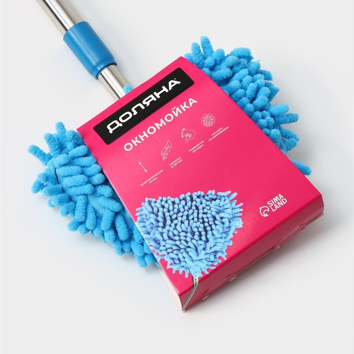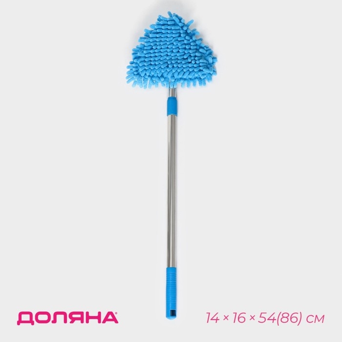 Щётка для окон Доляна, телескопическая ручка 54(86) см, поворотная головка, насадка из микрофибры 14×16 см, цвет синий